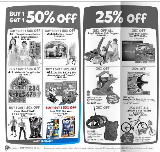 Toys R Us is having a Buy 1 Get the Second for 50% all Star Wars figures this week both online and in their stores! Not a bad deal to fill some gaps in your collection on the cheap. Click here to shop online. Happy Hunting!