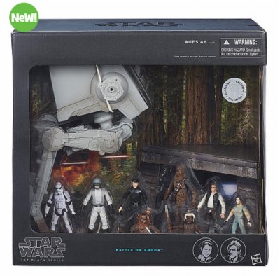 The ToysRUs exclusive Battle of Endor Battle Pack is now online for $99.99. The set features an AT-ST vehicle and 8 figures including Han Solo, Chewbacca, Princess Leia, Imperial Officer, AT-ST Driver, Stormtrooper, and a couple of Ewoks. Click here to order.