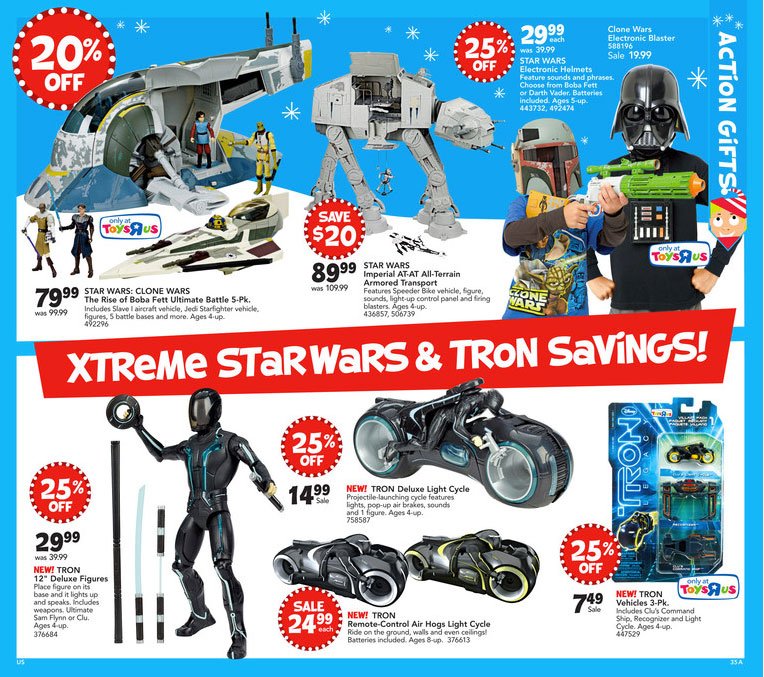 This week's Toys R Us sale features 20% the Rise of Boba Fett Ultimate Battle Pack and $20 both the regular and exclusive Vintage edition AT-AT. Also on sale are the Electronic Helmets and Blasters, and the Star Wars Uncle Milton Science sets for 25% off.