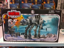 Our desert based Galactic Hunter, Mickey Gunslinger, comes through once again reporting that the Kennertastic Vintage Boxed AT-AT was found today in Toys R Us Chandler, AZ with a TRU exclusive price of $109.99. Happy Hunting and keep reporting those finds hunters!