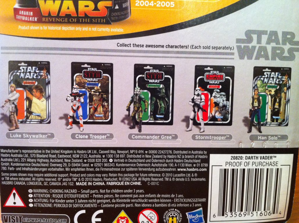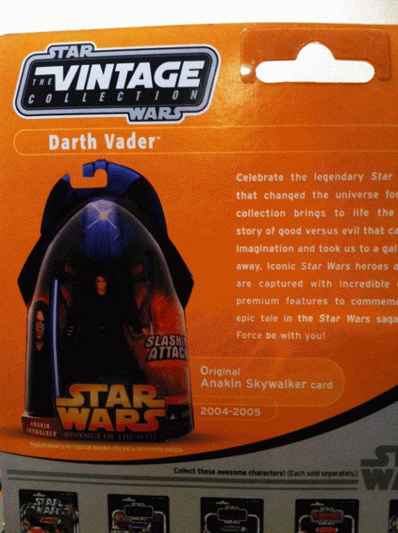 As Hasbro promised, the name tab, cardback, and POP for VC13, formerly known as Anakin Skywalker, is now appropriately called Darth Vader per his transformation and appearance in Mustafar. Of course, you now have two The Vintage Collection "Darth Vaders" on the pegs, the other being VC08, but that shouldn't confuse anyone, right?