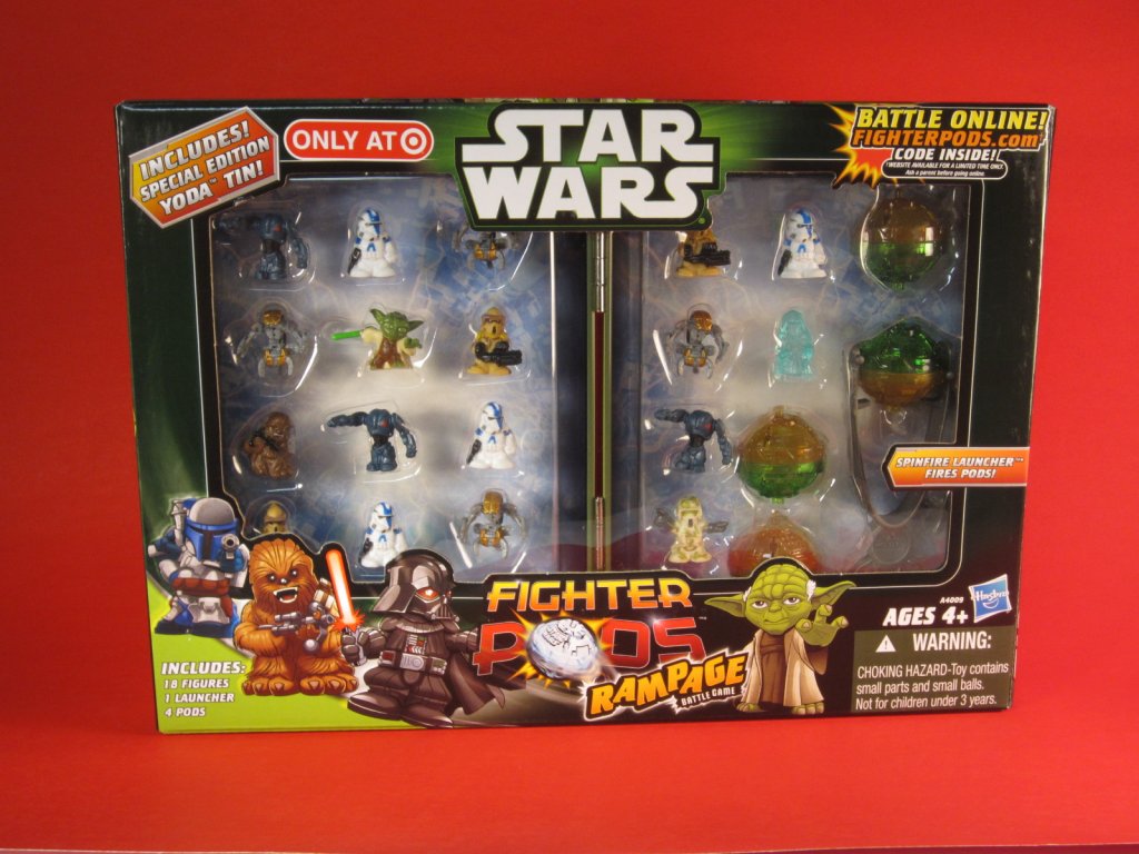 Here's a video review of a brand-new item that, 24 hours ago, I didn't even know was coming out. The Target Exclusive Special Edition Yoda Tin Star Wars Fighter Pods Set is in stores right now and features Yoda, Darth Sidious, and a ton of Clones and Battle Droids in this Kashyyyk-themed set. It's also the first new exclusive item to hit retail stores in quite some time. For $24.99, it includes 18 figures, 4 pods, a Spinfire Launcher, and a tin. And you can see me talk about these Revenge of the Sith-themed mini-figures after the jump.