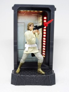 This newish Luke Skywalker is part of a new line of Titanium Series figures. If this sounds familiar, Hasbro also had these about ten years ago but these are new molds with a new footprint. Luke has two different blasters, but what's really neat is the display base with foot pegs the user can place. Take a look - read on!