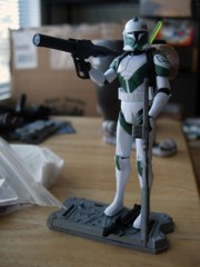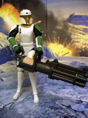 It's Clone Trooper Draa! He was on Geonisis, is green, and has a lot of non-firing accessories. For this, he is awesome. Read on!