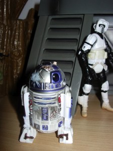 This R2-D2 is pretty slick, and has been released twice so far... each time as an exclusive. The uniquely sculpted figure has blown-open panels and exposed wiring, effectively making this a "dead" R2-D2. It's wonderful.