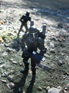 Let's look at this Omega Squad Demolitions figure, which is effectively Republic Commando Scorch done up in black. You should be sold already, after all, black repaints are like cheap, cheap candy to fans of articulated plastic. (I buy a lot of this sort of thing.) Is it worth your while to pick up this hard-to-find exclusive?