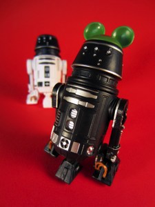 There were about 25 unique domes released at Star Tours for the Droid Factory setup, and the Black and White R8-Series Astromech Droid is one of my favorites. It has no big eye to speak of, but its head has a built in nacho dip bowl.