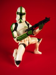 There are a lot of Clone Trooper figures, to the point where there are so many variants and repaints that some items are the stuff of legends. This green redeco of the crouching mold from the 3-packs which were sold at the back half of 2003 were like pre-posed army soldiers, what you see is basically what you get. Despite promotional images showing packs of 3 uniquely colored troopers being distributed, sets always had 3 white troopers or 2 white and 1 colorful trooper. Some were tough to get in certain regions, I had a heck of a time finding this green one and the yellow one. Is it worth tracking down?