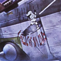 Those funny guys at the Hasbro art department injected some Strangelove humor in the background insert of the Attack Recon Fighter with Anakin Skywalker. UPDATE: Thanks to a tip from Yakface, we have more on this noseart design!