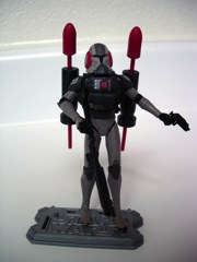 It's the Stealth Ops Clone Trooper, the non-exclusive black cartoon trooper! He has a backpack, and many guns. Should you army-build him? Good luck trying, and read on!