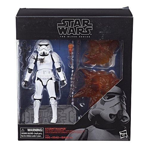 Toys R Us will survive in Canada, and they have this exclusive Stormtrooper. It's a lot like our other troopers with a stand and some flame accessories, and it's CAN$49.99. A standard figure is CAN$29.99, so it's $20 extra for two painted flame pieces, a new blaster, a couple of black paint splotches, and a grey display base. We'll post more about when or if this becomes available elsewhere.