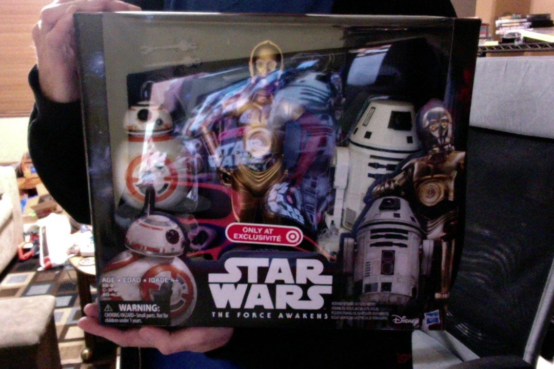 In "news that can scare youse" news, Target stores have a $29.99 3-pack of 12-inch (1:6 scale) droid action figures from Star Wars: The Force Awakens. Given no prior publicity or announcement, these sets include R0-4L0, C-3PO, and BB-8 - not a bad deal. However, don't limit your search to the toy department - I found all of these sets and other toys in the DVD/movie/Blu-Ray section on an endcap. Happy hunting!
