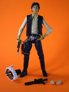 So kids, let's upgrade to the 6-inch Han Solo, which has alternate belts and alternate hands. You'll probably spend at least an hour just futzing with him once you open one - it's quite good and fun to mess with. You get two guns, too. Could you ask for more? Yes. Read on!