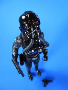 What's new with the Black Squad TIE Pilot, Amazon's exclusive Droid Factory figure? Not much. The highlights are the inclusion of the rectangular gun which recalls the Kenner original, and the fact that the figure has not two, but one Imperial logo on his helmet. Read on!