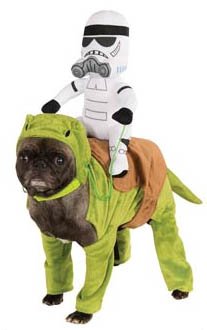 Proving that Lucasfilm was in an era that would license absolutely anything, here's a Dewback Dog Costume. This is apparently a real thing, and I for one am appalled. We used to be in a marketplace where the line had a little more integrity than this. I can only imagine how humiliated that dog will be when his labradoodle neighbor mocks him for having a Stormtrooper on his back instead of a Sandtrooper.
