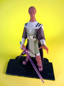 It's Mace Windu! This is the first animated version of the Jedi warrior, complete with purple lightsaber and display stand. It's basically a statue, but it's a cheap statue. This makes it good. Did you get one? Why not?