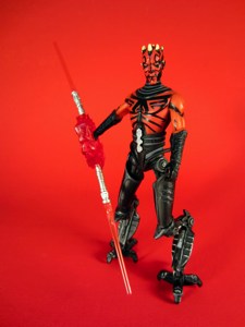 It's Darth Maul, as seen on TV and likely at a Target near you. With a nifty spinning mechanism integrated into the weapon (rather than the figure) it's a rather clever new take on an existing outfit. Is it worth shelling out for?