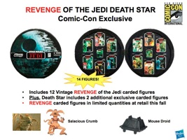 The Hasbro exclusive Revenge of the Jedi Death Star Figure set sold out, along with most of the popular Hasbro exclusives, late Saturday. Hasbro even sold the sample that they had displayed in their booth, giving credence to the low production quantities of this exclusive.