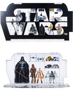 Thanks to our pal Seth, we have been alerted to this fine item. The Star Wars Logo Display Case came out in Japan a few months ago and sells for about US $24. It has room to fit a few figures or small vehicles, or what any collector might refer to as an adorable first day of being in the hobby. It's stylish and classy, which clashes with the gargantuan toy hordes in our homes and offices.Click here to see availability at HobbyLink Japan. They are not an advertiser but I've been buying Zoids and Transformers from them for years.