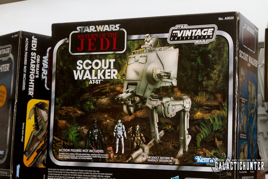 On the other hand, the Vintage Return of the Jedi Endor AT-AT will be distinguishable from the 2010 release by muddied Endor forest paws and a different deco on the driver. The AT-AT is also a ToysRUs exclusive.