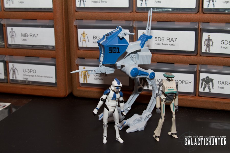 Rounding out the assortment are a pair of repaints. The 501st Legion will expand with the AT-RT and Republic Clone Dropship, the former of which seems to include an animated ARF Trooper and Tactical Droid while the latter includes a Clone Pilot and Battle Droid. The deco on all figures is new and unique, so you should probably want to get these.
