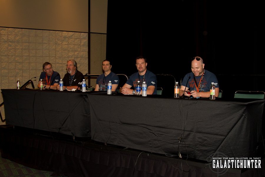 I wasn't able to get free wifi running this time, so let's get started in a timely fashion. (Hey, at least the delay wasn't as bad as the Olympics right?) The panel preshow kicked off with a round of trivia asking if anyone had a vintage carded Hasbro figure... which is kind of an impossibility. But anyway, let's get to the reason we're all here: merchandising!