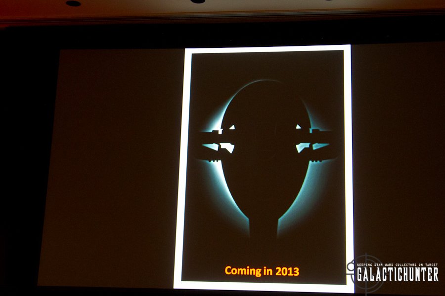 Boba Fett's Slave I is coming in 2013. Apparently in Vintage packaging. It was presented as a shadowy silhouette, but let's be honest, we know what this. "We should have more details at Toy Fair."
