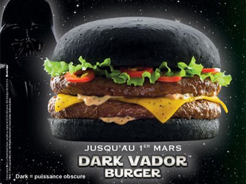 French-Belgian fast food chain Quick is releasing Star Wars themed burgers just in time for the TPM 3D release. Part of this special menu is a "Darth Vador" Burger with an all black bun. A Jedi Burger and Dark Burger will also be served.