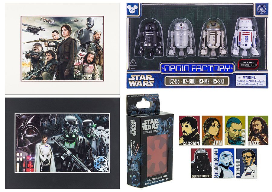 If you're planning on being at Disneyland or Disneyworld soon, a whole slate of Rogue One theme park products have been announced for September 30! The pricing is unknown, but click here to see everything. A new Droid Factory 4-pack brings you C2-B5 (new), R2-BHO (new), R2-M2 (new), and R5-SK1 - which looks a lot like R5-D4. I'll have the skinny for you when I (hopefully) pick up my set in October along with (hopefully) R2-B00.