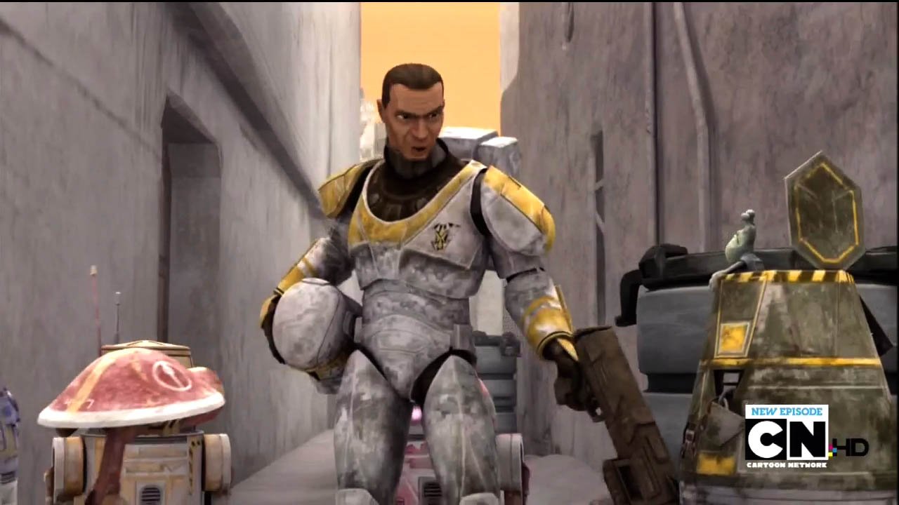 The Clone Wars without Clone Troopers probably seems like a cop-out, and I'm sure to anyone under 20 it really was. This week we get to meet Gregor, a Clone Commando who just happened to forget his identity and he was being used as slave labor on Abafar. It's a lot like that episode of Batman: The Aniamted Series called "The Forgotten," only less miserable. The Clone crashed on this planet and has been basically conscripted into the life of a dishwasher. The reality is that he's a missing-in-action solider, as confirmed by scanning something in his wrist which, apparently, can be done by an Astromech droid. So all these droids are carrying around a database of millions of troopers on them, or there's some sub-ether radio which acts as intergalactic wi-fi. I'm not sure which. I guess it doesn't matter.
