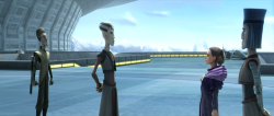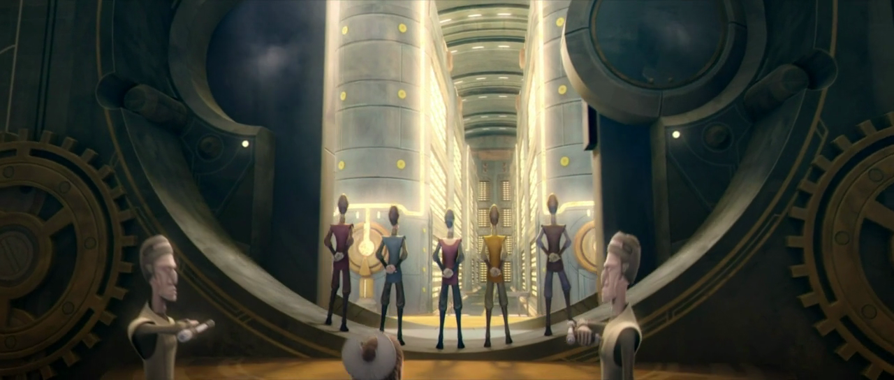 Aside from seeing more of the Banking Clan, we're also introduced to a mediator named Clovis - someone Anakin must think is pretty hot as Padme seems to have no interest in him, but Skywalker won't hear of it. Hey, whatever man. We get a pretty nifty heist sequence out of all of this which involves Padme seeing the Banking Clan vaults to digitally count the money, of which there is none. It seems odd in this era of online banking that you'd need to go to a vault where money is no doubt transmitted digitally, but whatever, it was a nice visual. We even got an animatic of Padme breaking into the vault as part of the exposition, which was delightful.