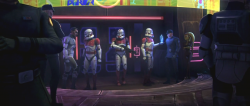 I was delighted to see a bunch of Clones at a bar, and I think it was effective to put many of them in Officer outfits instead of armor to drive home the divide the show really needs to forge between our friendly, now dying Clones and the faceless hordes that helped to execute Order 66. I assume there's a solid reason most of those guys don't get a lot of face time in the cartoon, mostly because we might be a lot more upset of Bly was a good friend of ours rather than a cameo.