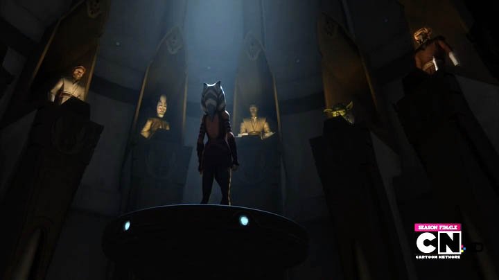 The plot: If you watched last week's episode, you probably figured this one out but it was still some dramatic stuff. Ahsoka's trial begins, but not until after the Jedi Order kicks her out after a brief hearing which sort of shows the Jedi to be a bunch of tools. (This is a stark contrast to the 2003-2005 Clone Wars series, which treated them like super heroes.) Tarkin gets his show trial, while Palpatine returns voiced by Tim Curry (who has had an incredible string of voice-over gigs). Before we get into heavy spoiler territory below, let me just say that this arc makes a great bookend to the 2008 movie and would have been a great series finale. There's a part of me that hopes that it is the last one that ever airs - it might be - for all I know they'll burn off the remaining unaired episodes on a DVD or Blu-Ray release, or put them in the vault so the millennial generation of Star Wars fans can have an equivalent of the "Biggs scenes" of their very own.