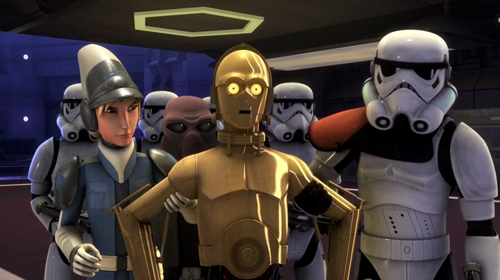 One of the things about The Clone Wars, Rebels, and even Ewoks and Droids is that they have difficulty transcending their place as a kid show to sell toys and remind people of how much they love Star Wars in its many forms. The show wasn't designed to make people think about complex social issues or question who's right or who's wrong - the good and the bad are usually clearly defined. Even though our heroes are doing some morally ambiguous things, they're clearly the good guys - they never doubt themselves, and the Empire has a way to go before being cartoonishly evil British white dudes. The format and indeed the budget probably restrict such things, and we're seeing fewer characters per shot and "crowd" scenes aren't particularly crowded. I assume the first season - which I read is 16 installments - is largely going to be serving the purpose to remind everybody just how much they love the original trilogy, which will no doubt lead up to some new push on Original Trilogy wares next year before Episode VII stuff hits stores in, let's say, September. That's a good month.