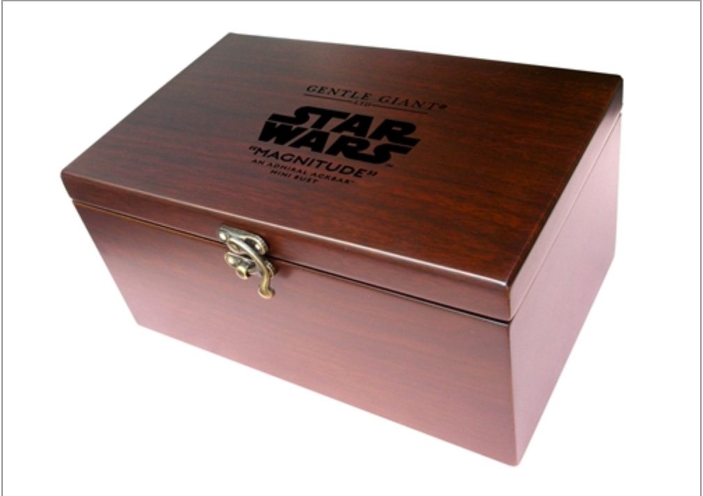 The minibust stands 8 inches tall and comes in a screen printed wooden box with a limited edition 4x6 lithograph by Acme Archives.