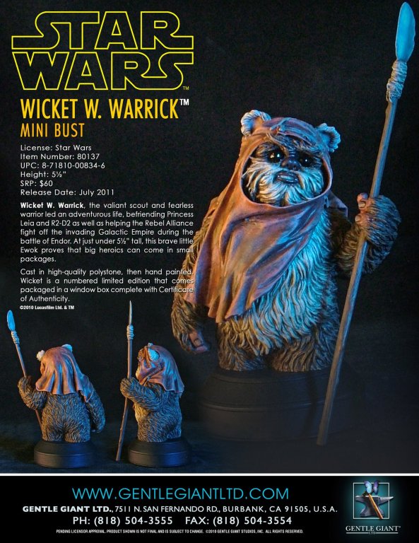 Wicket W. Warrick, the valiant scout and fearless warrior led an adventurous life, befriending Princess Leia and R2-D2 as well as helping the Rebel Alliance fight off the invading Galactic Empire during the battle of Endor.