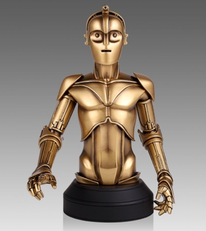 But wait, there's more! Gentle Giant announces a third Star Wars 2013 SDCC/Convention exclusive: McQuarrie Concept C-3PO Minibust! Based on the conceptual art of the great Ralph McQuarrie, the deluxe minibust features two interchangeable heads that represent two different concepts for our favorite golden droid.