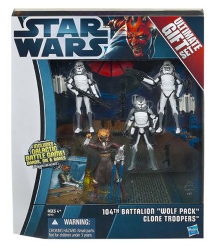 A former Walmart exclusive is now online only and available at Target, Hasbro Toy Shop, and Big Bad Toy Store. This four figure gift set includes a re-issued Plo Koon and re-painted Commander Wolffe. (Buy from BigBadToyStore.com)
