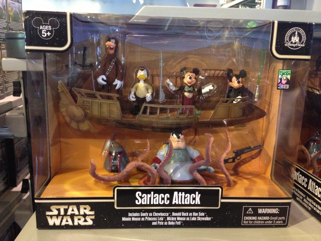 A Sarlacc Attack set featuring Disney characters as their Star Wars alter egos was a nice surprise with echoes of Hasbro’s own action figure battle pack. The five figures included have all been offered before, but is a good deal for $29.95, considering the last time some of these figures were issued was in 2007. The set definitely stands out as a nice ROTJ homage and includes the 30thanniversary logo sticker.