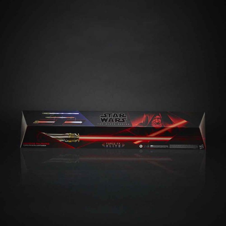 With the STAR WARS: THE BLACK SERIES EMPEROR PALPATINE FORCE FX ELITE LIGHTSABER, featuring advanced LED technology and movie-inspired sound effects, fans can imagine STAR WARS action and adventure. The real metal hilt features design and deco based on EMPEROR PALPATINE’S iconic Lightsaber featured in STAR WARS: REVENGE OF THE SITH. Press buttons on the hilt to activate movie-inspired sound effects, progressive ignition, battle clash effect, wall-cutting effect, and lightning effect. Proudly display this Lightsaber on the included stand, with or without the removeable blade. Requires 3 1.5V AA batteries, not included. Includes Lightsaber, stand, and instructions.