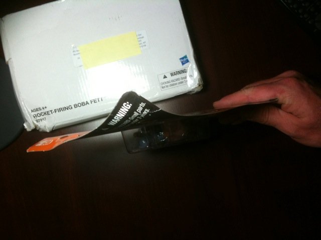 Today I received two of the three Fetts I ordered. One box was so smashed that the bubble wasn't even glued to the cardback anymore. The figure fell out on the floor. The other box was fine.