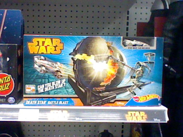Toys R Us' new Star Wars resets are giving both sides of an aisle over to the space opera, providing close to Episode I-levels of real estate devoted to our favorite toy line during a period where, frankly, that's just confusing. But the advantage here is there's a lot of room to fill and the Star Wars Hot Wheels Death Star Battle Blast is in stores now. It's $14.99, has an X-Wing car, and... that's about it, really. See the image I took with a Nintendo 2DS, after the jump.