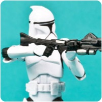 TOPPING THINGS OFF: There have been two Phase II Clones released before this on the older body style but this is clearly the one to have. The detail and proportion of the sculpt s amazing and the ball jointed super articulation will allow you to pose him in various battle or neutral stances. If you're fortunate, he's been showing up at discount retailers along like TJ Maxx with the rest of Wave 6 for $5 each. But unless Hasbro re-issues him in a troop builder set exclusive (Hint, hint EE!) or even a Battle Pack, building an army let alone a squad, will be expensive with a lot of effort. This Trooper puts the the attack in Attack of the Clones. I wouldn't even mind him coming in addtiional Skittles colorways. This is an essential acquisition.