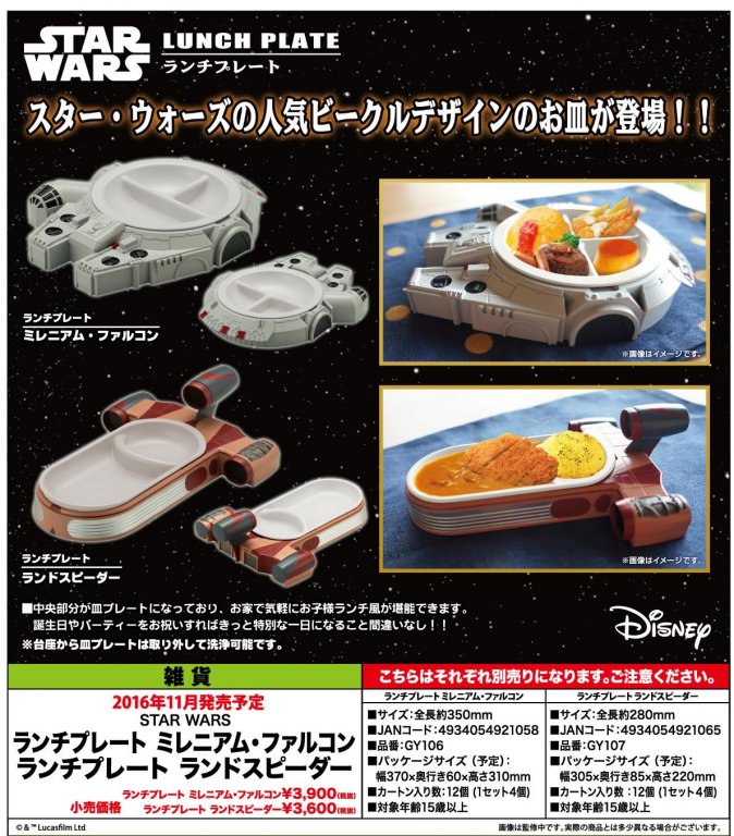 New from Kotobukiya - at importer NCS - is the Star Wars Lunchplate. A Landspeeder and Millennium Falcon-based platter set is up for grabs for $40.90. Each one, I suppose, makes lunch an out of this world experience. Check it out!