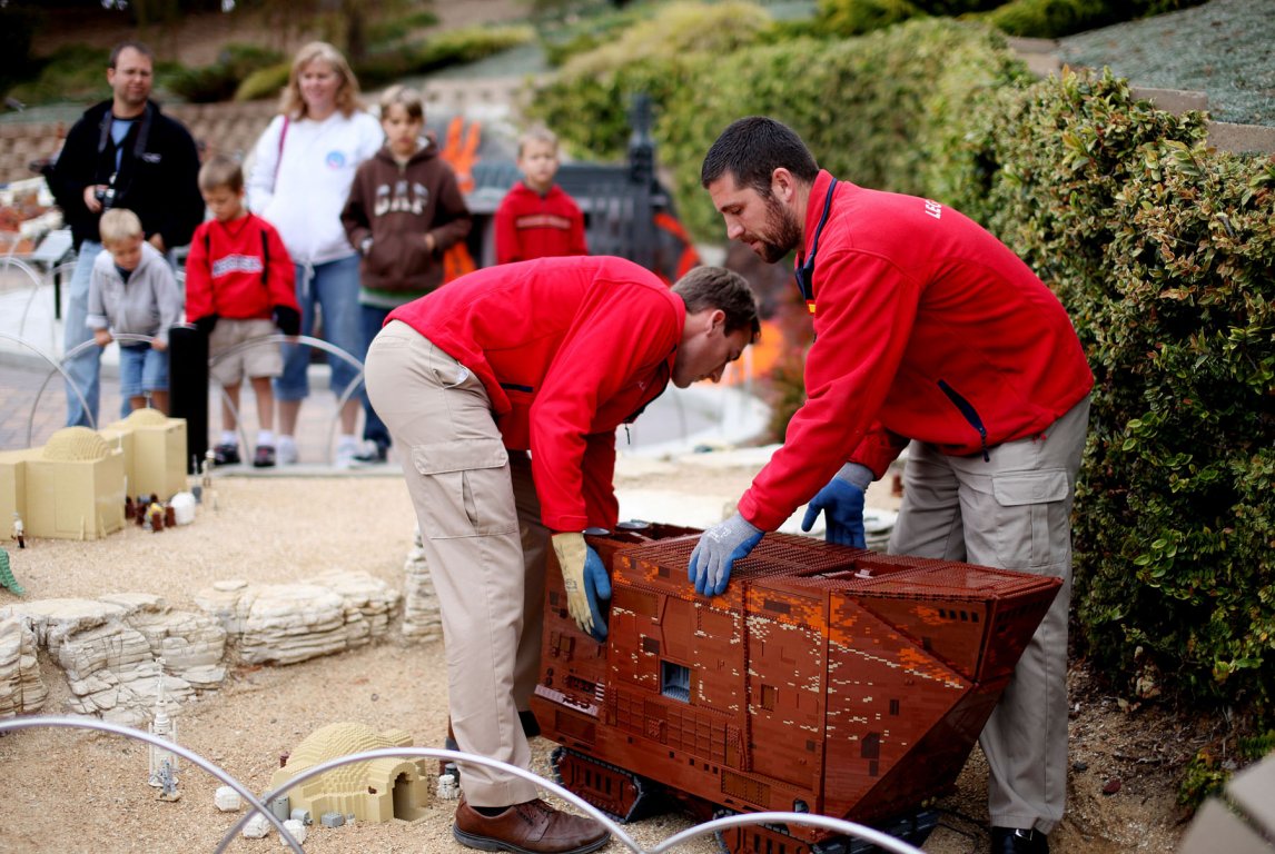 LEGOLAND®California’s Master Model Builders, Gary McIntire and Ryan Ziegelbauer, installed a new LEGO® model of a Jawa sandcrawler in LEGO® Star WarsMiniland today as the family theme park prepares to reveal the expanded area to the public on March 29.
