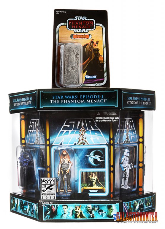Hasbro has released a couple of nice, clear photos of the Comic-Con International 2012 Star Wars Exclusive Carbonite Chamber multi-pack featuring an exclusive Vintage Collection Jar Jar Binks in Carbonite.