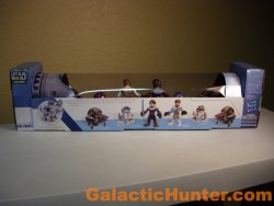 A stealth exclusive? Yup! Take note of this one, kids, because this is one of the ones you might skip and kick yourself about in about four years if the secondary market prices on Galactic Heroes are any indication. This new Jedi Force Clone Wars Adventure Pack is $14.99, in some Targets now on a special mixed Playskool/Imaginext endcap, and is-- say it with me-- just different enough to make you mad.