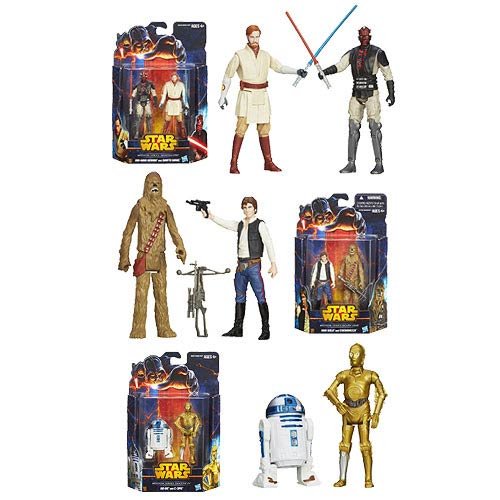 Darth Maul vs. Obi-Wan Kenobi is the winner here - while Darth Maul's face doesn't quite match his chest, the earthtones look right at home in Jabba's palace, and he fits fine in a Sith Infiltrator vehicle. Obi-Wan Kenobi is the existing Saga Legends figure with new deco and new animation-inspired arms. It's good!
