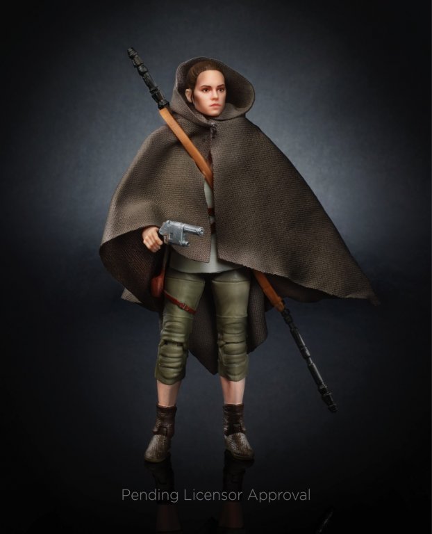 Joining him is Rey in a new costume with coat and weapons. Her pants have built-in kneepads and it appears that she's using the new Hasbro face-printing technique to put a portrait over the face sculpt, which could do wonders in giving these figures a little more life. Let's just pray we never see the crooked ones, because that would be hilarious.