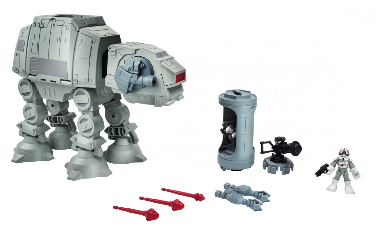 New Galactic Heroes! Hasbro was kind enough to send along some of their NYCC reveals. New York Comic Con has a press event running alongside the show. Unmasked Kylo Ren vs. Rey, Chewbacca vs. First Order TIE Pilot, and an AT-AT were show! There are big weapons, clever gimmicks, and bigger, jointed figures that you probably previously also saw as Jedi Force a few years ago. More pictures after the jump? Sure! But you can also see all of this stuff on our Tumblr. Follow us there for more!